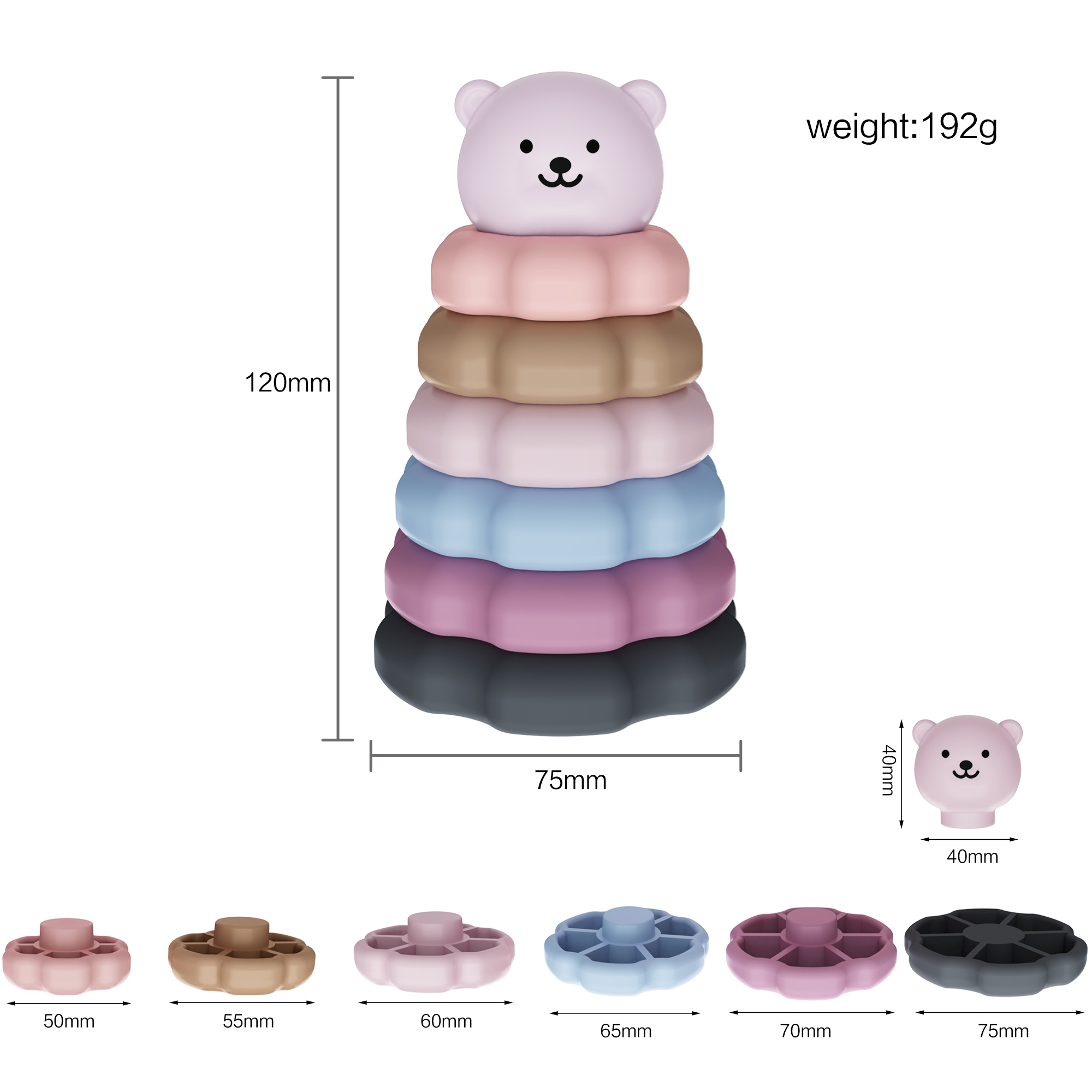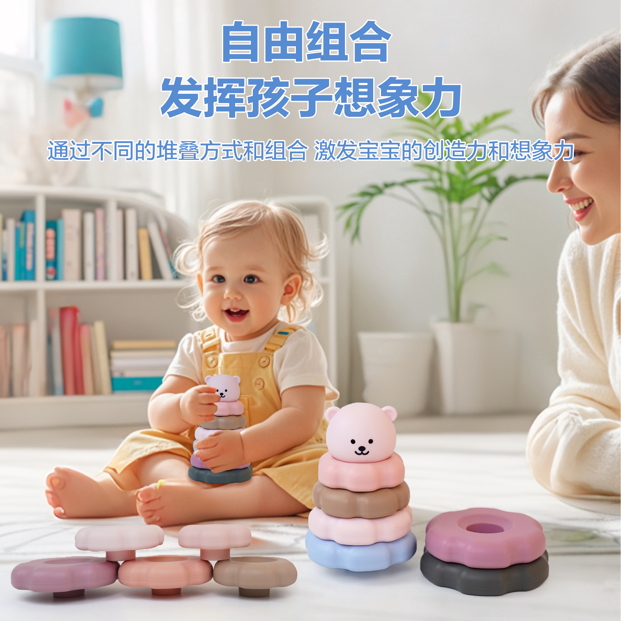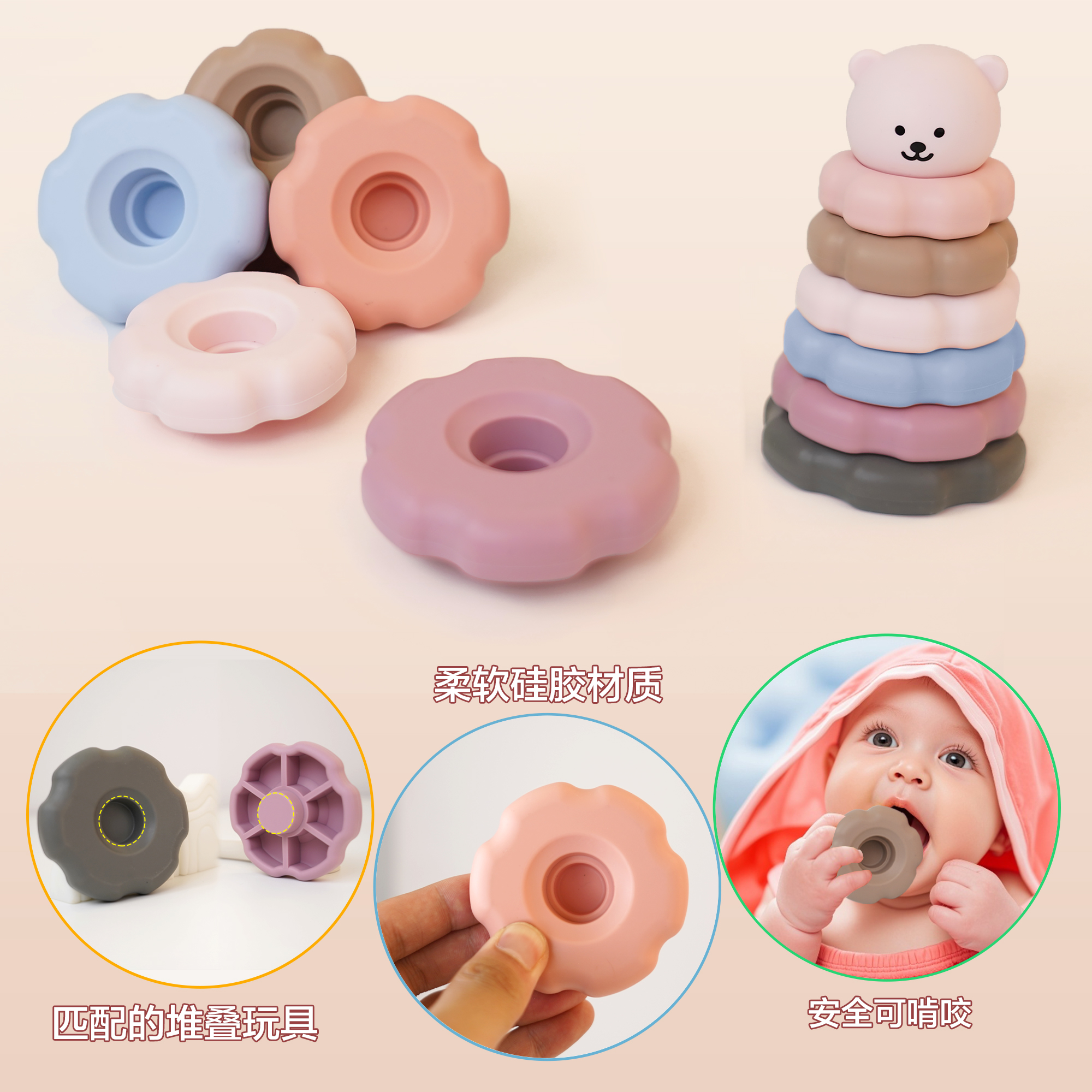 3-6歲寶寶益智硅膠疊疊樂(lè)六瓣花早教益智玩具硅膠積木
