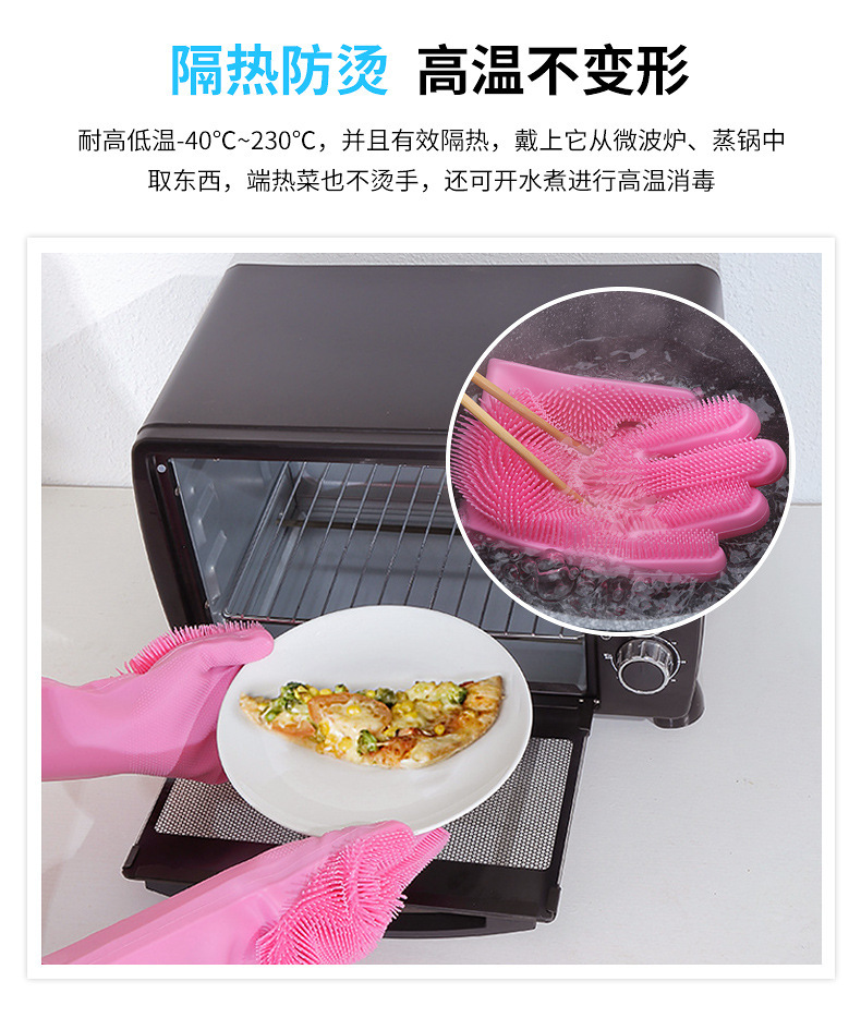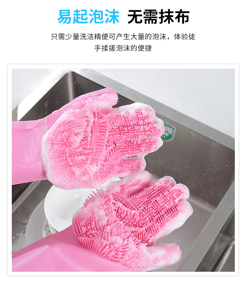 3.手套易清洗徹底不滋生細(xì)菌,這一點(diǎn)是很多清潔用品都做不到的,油脂、醬油、醋、污垢等等都無(wú)法有力附著在硅膠表面,而其他比如鋼絲球、海綿塊、洗碗布等等材質(zhì),都做不到,使用硅膠洗碗手套實(shí)在是讓人放心。