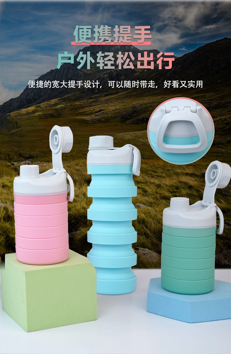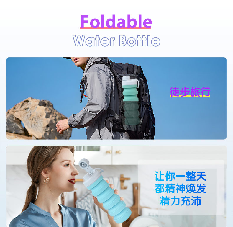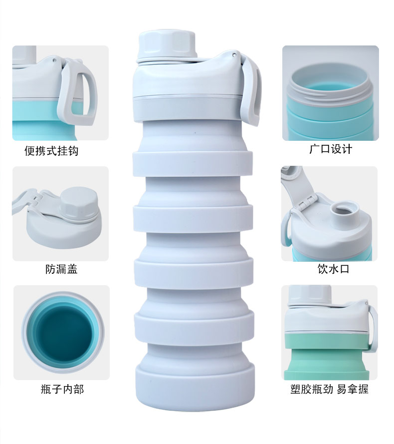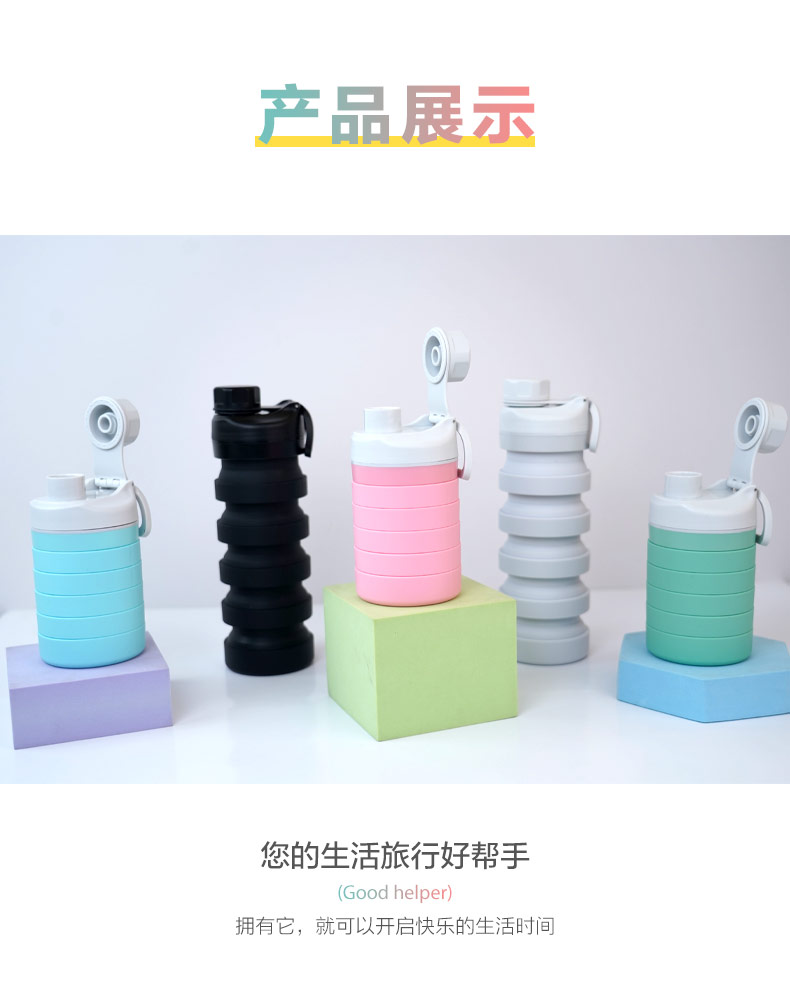 用途:食品級(jí)材質(zhì),不含BPA,可伸縮折疊,不占空間,抗摔 耐壓,耐熱抗冷,多色可選,時(shí)尚健康