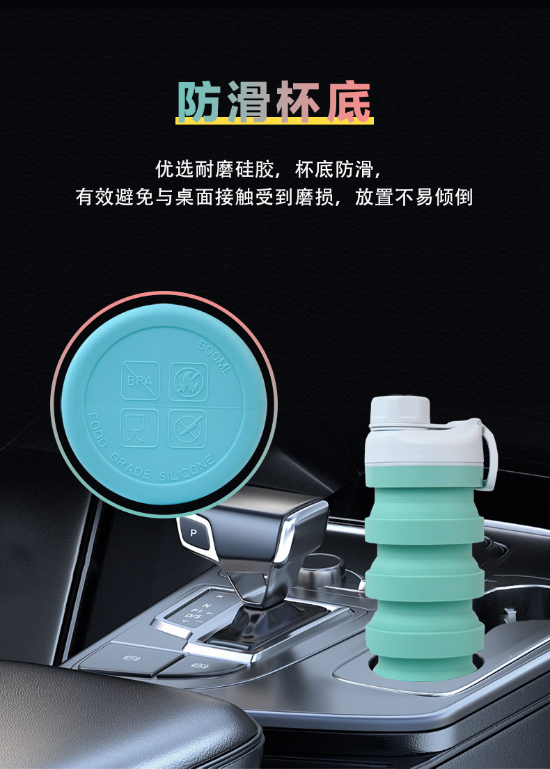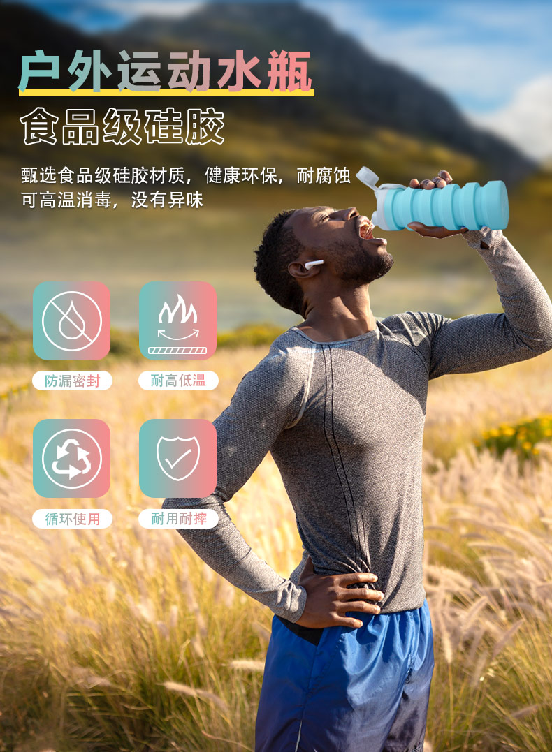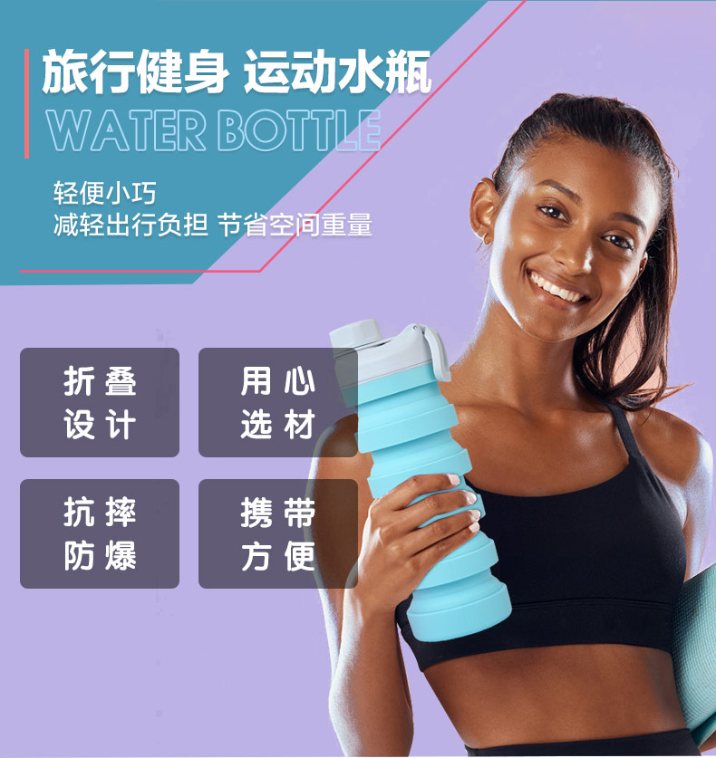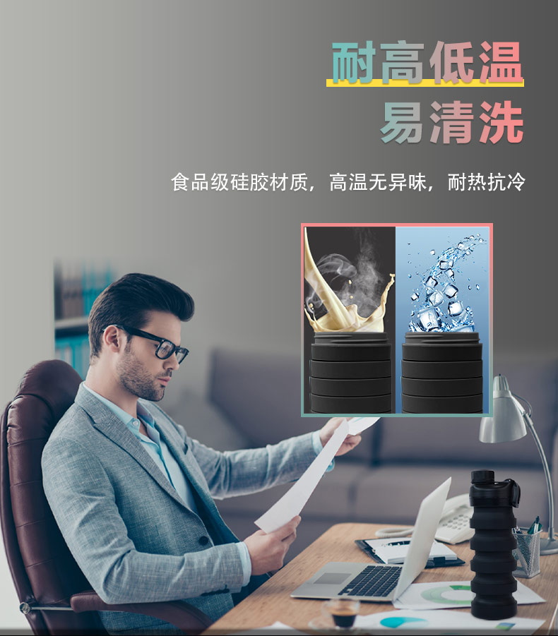 用途:食品級(jí)材質(zhì),不含BPA,可伸縮折疊,不占空間,抗摔 耐壓,耐熱抗冷,多色可選,時(shí)尚健康